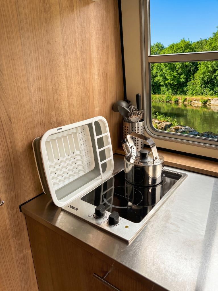 • Each cabin has its own double bed, handbasin, wardrobe and storage