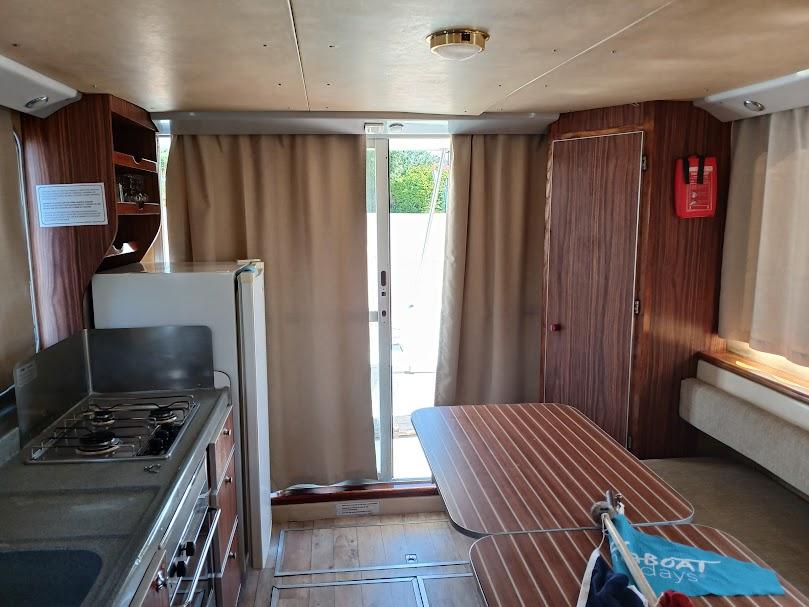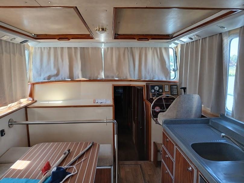 Equipements | Ancre, Batterie, Chauffage, Congélateur, Cuisinière à gaz, Détecteur de gaz, Évier, Extincteur, feux de navigation, Four, Installation d'eau chaude, Lecteur MP3, Pompe de cale, Prise de quai, Propulseur d'étrave, Radio, Réfrigérateur, WC électrique |
