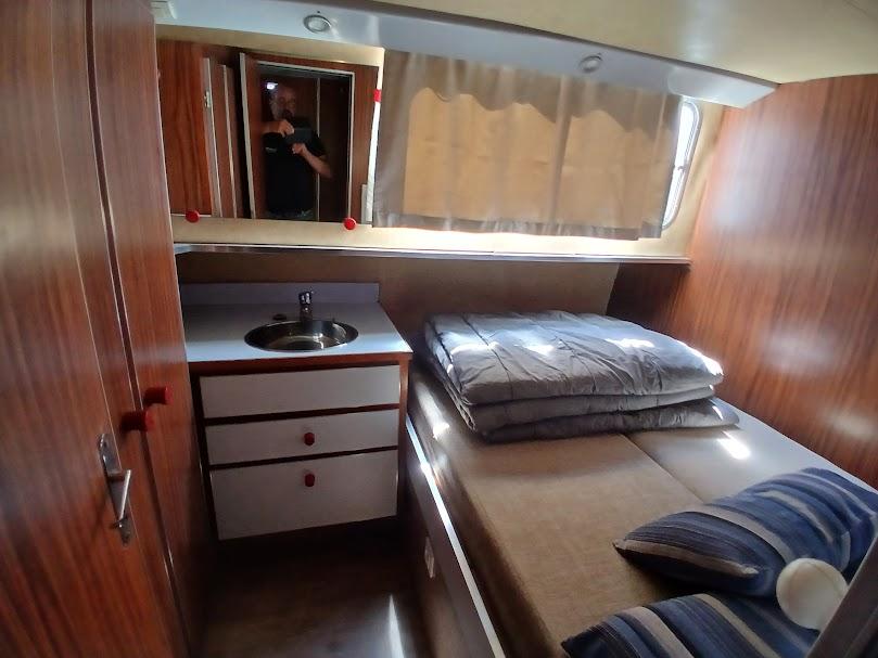 • Quatre grandes cabines avec lit double, possibilité d’installer un lit superposé supplémentaire dans les 2 cabines avant