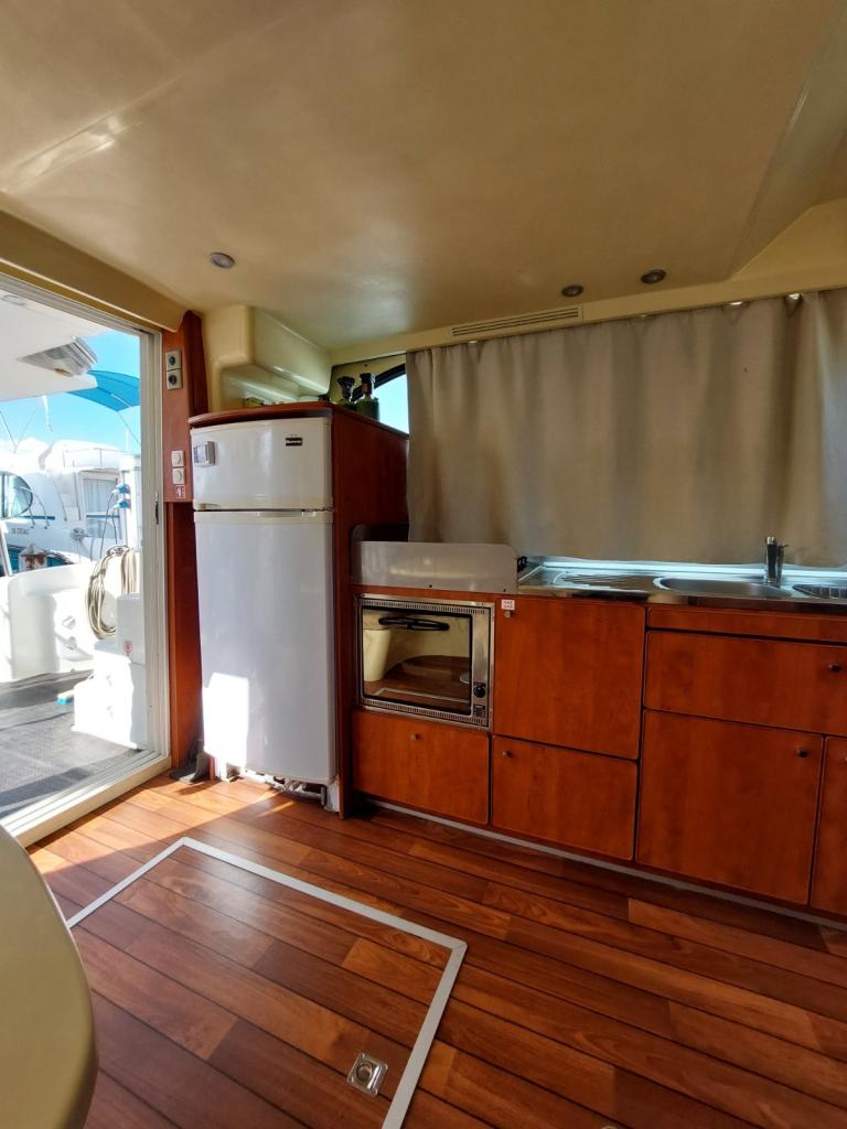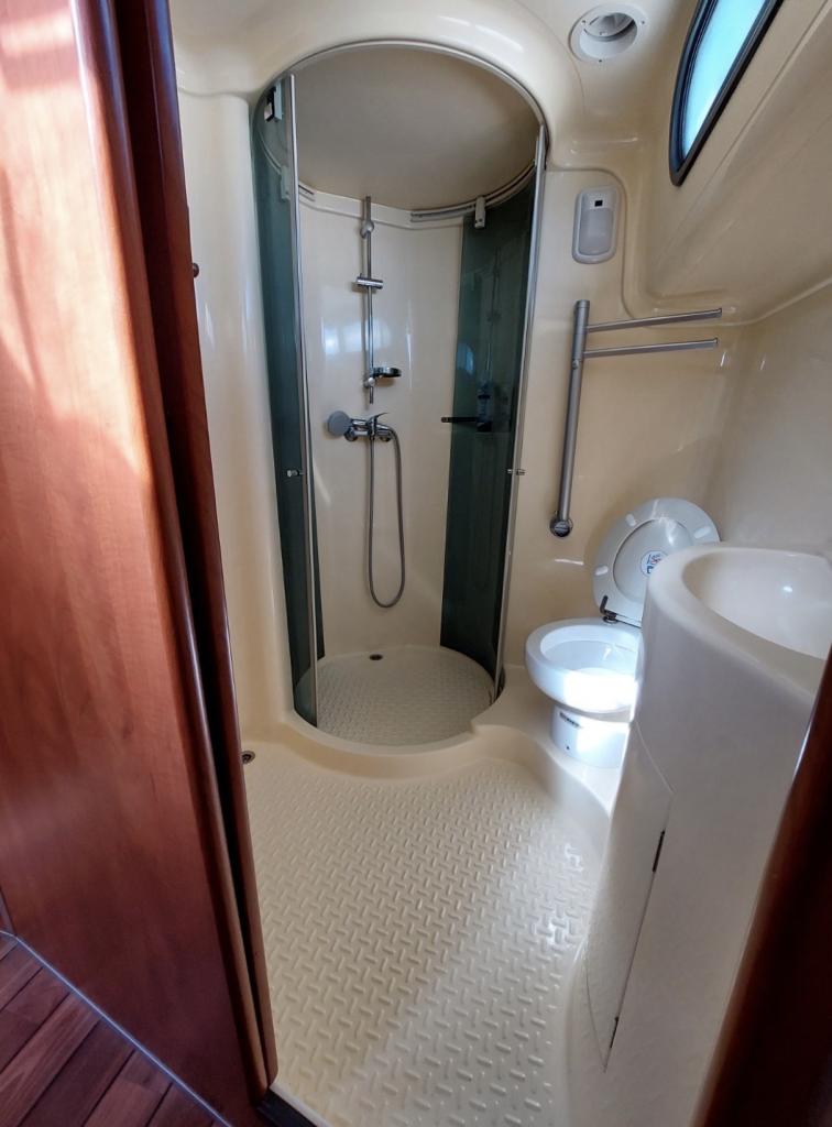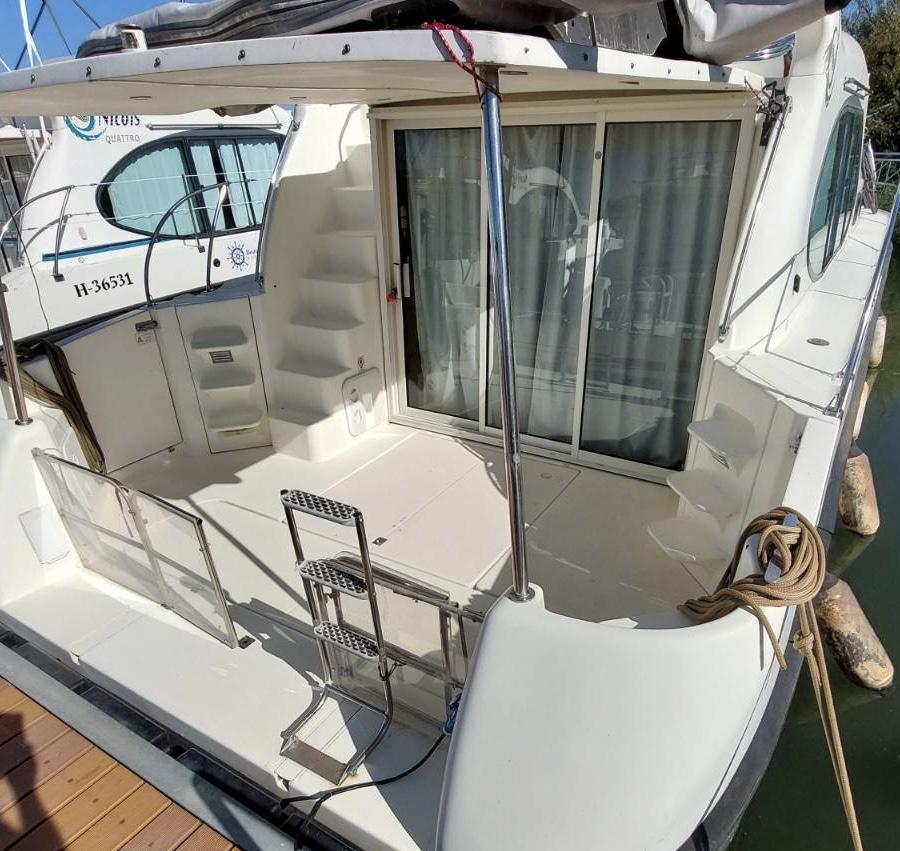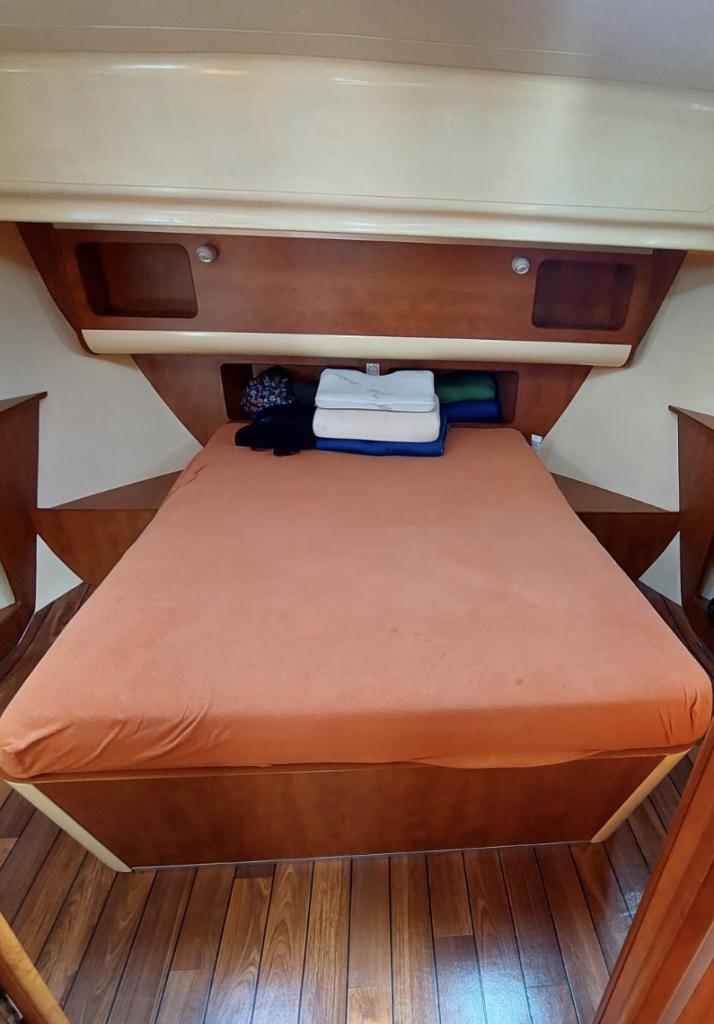 | Equipements | Ancre, Chauffage, Congélateur, Cuisinière à gaz, Echelle de bain, Évier, Four, Générateur, Guindeau de proue, Installation d'eau chaude, Passerelle, Pompe de cale, Propulseur d'étrave, Réfrigérateur, Top Bimini |
